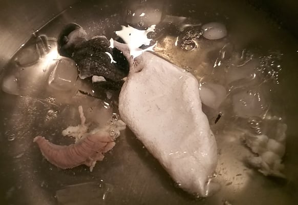 お刺身と皮は自分たちで調理が必要